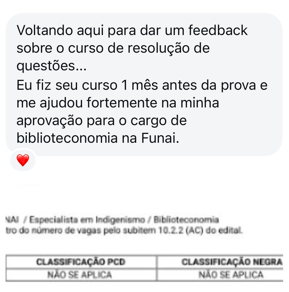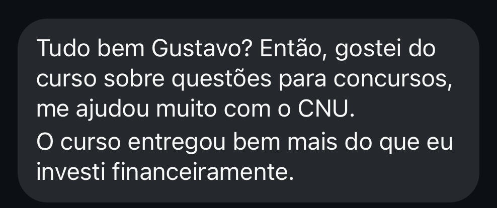 CURSO ACERTE MAISNesses 20 anos na indústria dos concursos, de simples candidato a aprovado em primeiro lugar em vários concursos, de professor a elaborador de provas, entendi que a principal capacidade para atingir sua aprovação em concursos públicos, especialmente os mais concorridos com apenas uma vaga, é a capacidade de acertar questões sem saber a resposta.Sim. O que vai garantir sua vaga é justamente aquela questão que você acertou sem ter domínio sobre o assunto.Para isso, você precisa aprender a ler melhor as questões.Pensando nisso, desenvolvi um curso chamado ACERTE MAIS, para ensinar você como ler melhor as questões de concursos identificando palavras, sinais e outros elementos que sugerem erro na afirmativa.Foi assim que a aluna abaixo conquistou sua vaga no CPNU, concurso com diversos assuntos e quase nada de biblio.